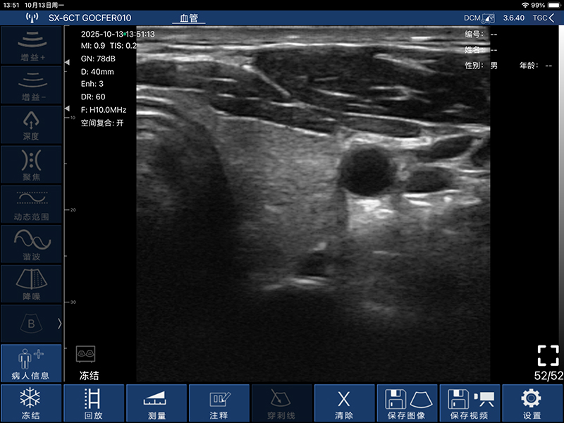 - 穿刺辅助功能:平面内穿刺引导线功能,平面外穿刺引导与血管自动测量功能
